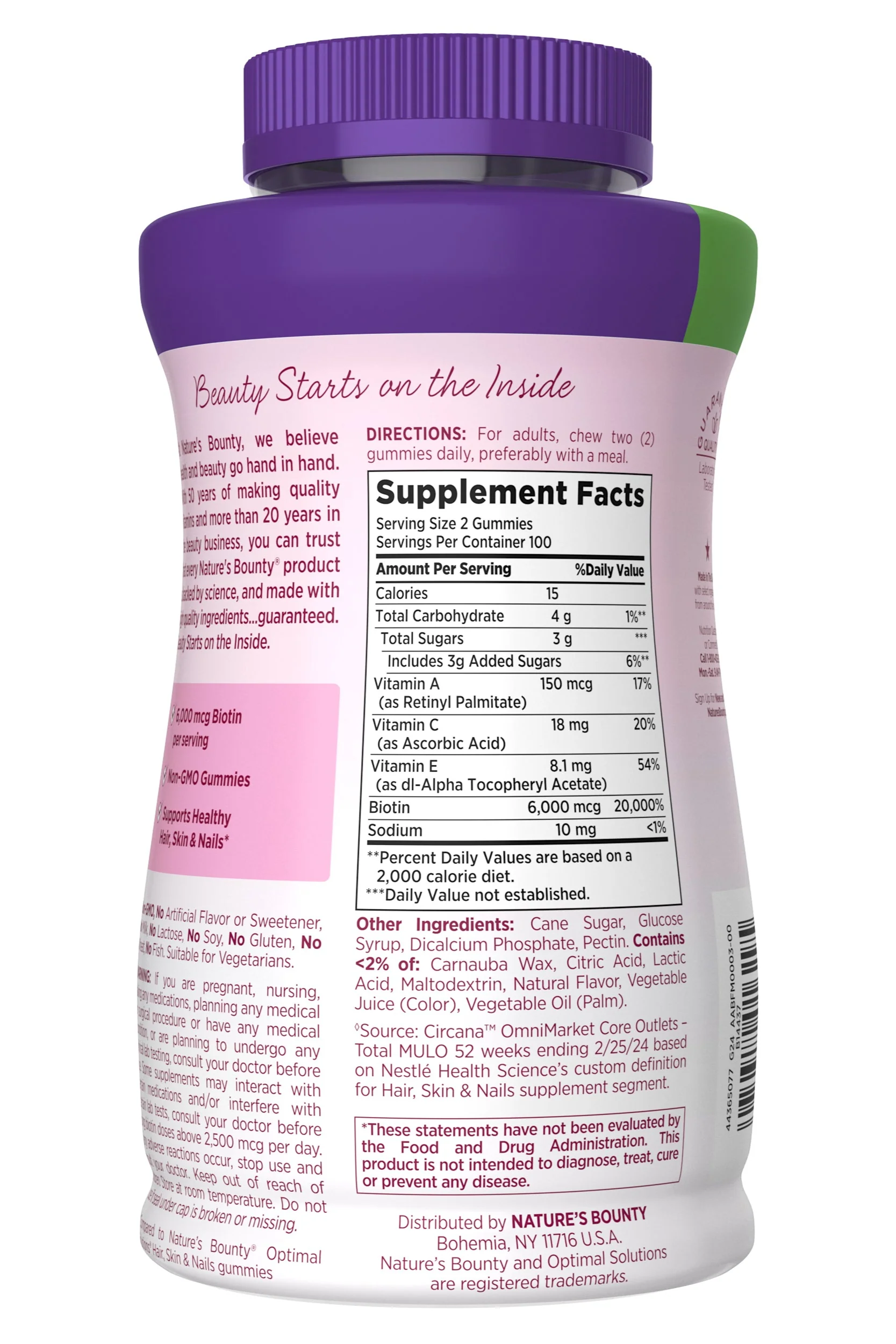 Give your beauty routine an upgrade with Nature’s Bounty® Advanced Hair Skin & Nails Pectin Gummies! These gummies made with Fruit Pectin, are Packed with 2x the amount of Biotin as our leading Hair, Skin & Nails gummy formula, each serving contains 6,000mcg of Biotin to support beautiful hair, glowing skin, and healthy nails.* Bursting with the same delicious strawberry flavor as our original Hair, Skin & Nails Gummies, our Advanced formula is Non-GMO and includes Vitamin A which plays an essential role in maintaining skin health.* Our Advanced Hair, Skin & Nails Gummies also contain antioxidants Vitamin C and Vitamin E. Vitamin C is involved in the production and formation of collagen, acting as the basis for vibrant skin, while Vitamin E is a nutrient that is found on the outermost skin surface.* As an added bonus, our delicious gummies are and are suitable for vegetarians, making them the perfect supplement to your beauty regimen from the #1 Brand for Hair, Skin & Nails.◊ Packaging may vary. †Compared to Nature’s Bounty® Optimal Solutions® Hair, Skin & Nails gummies.