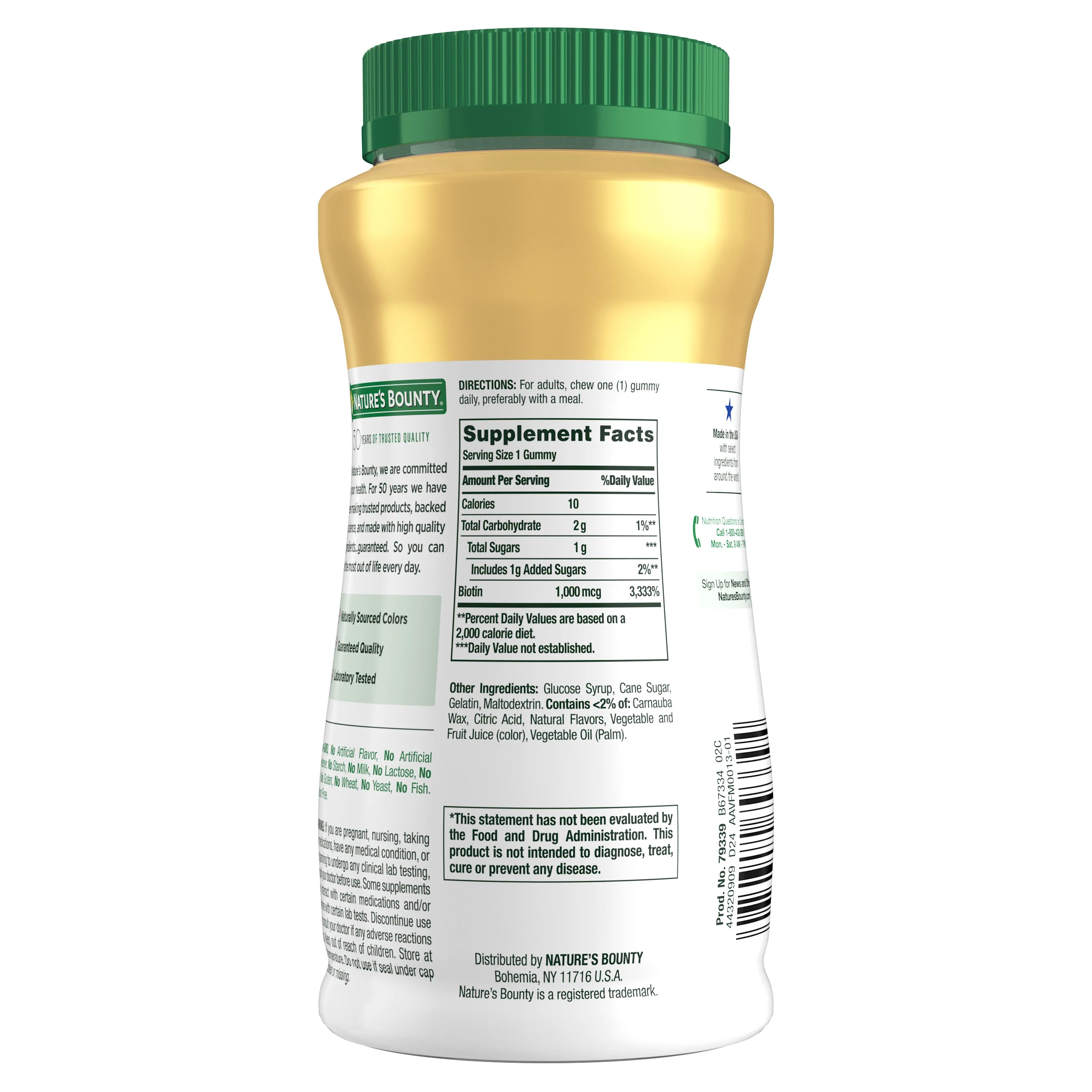 Nature’s Bounty Biotin Gummies are a delicious way to support healthy hair, skin and nails.* Containing 1000 mcg of biotin per serving, the mouthwatering grape, orange, and cherry flavored gummies are made from naturally sourced colors and flavors. Just take one gummy daily, preferably with a meal to help you continue to look and feel gorgeous.*