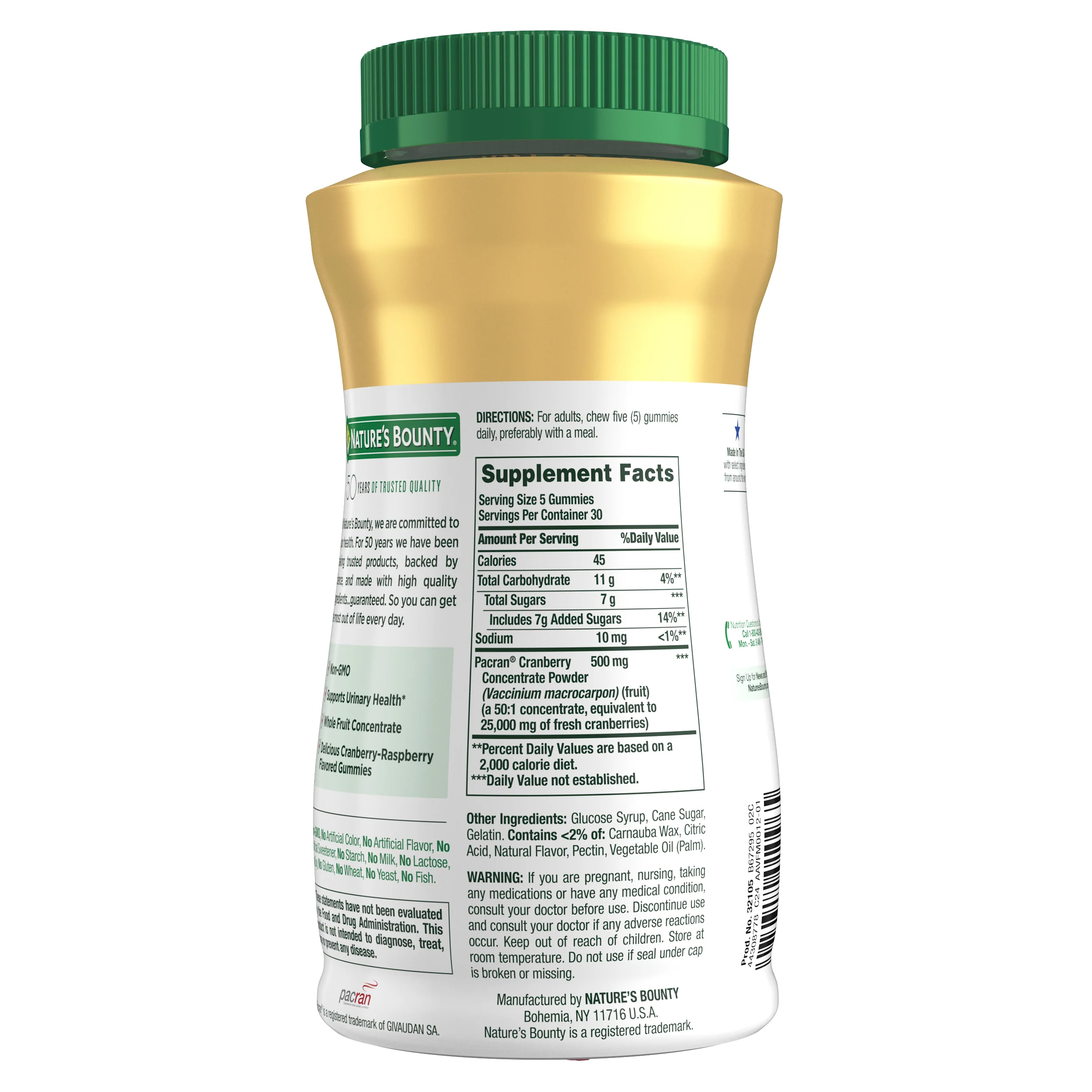 Support healthy urinary tract function with Nature’s Bounty® Cranberry Gummies.* Each serving contains 500 mg of Pacran®, a Cranberry concentrate made from whole berries and clinically studied to help maintain urinary tract health.* Cranberries also provide antioxidant properties. Contains 150 gummies.