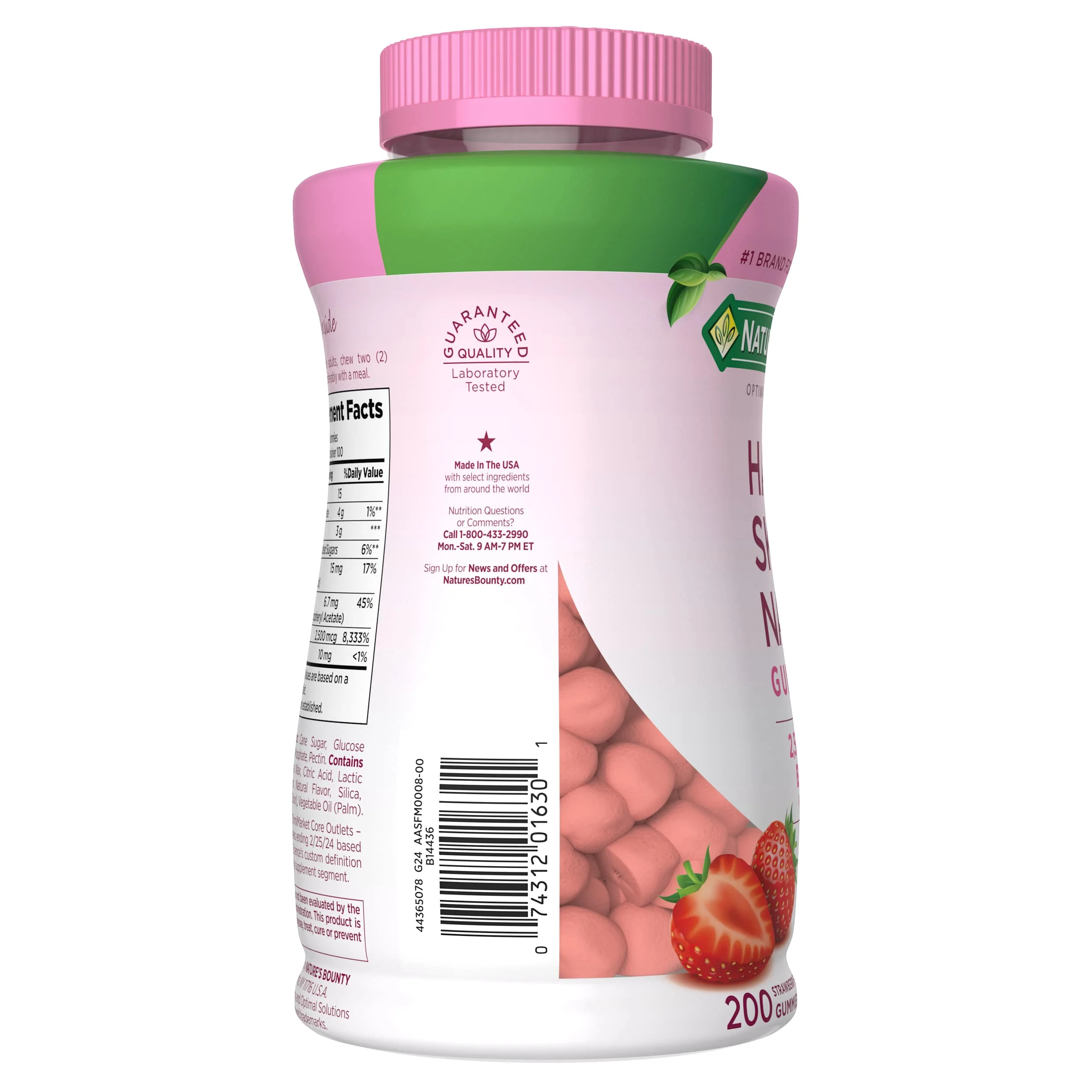 Nature's Bounty® Optimal Solutions® Hair, Skin & Nails Pectin Gummies provides you with the vital nutrients to support your natural beauty from within.* These gummies are made with Fruit Pectin and are suitable for vegetarians. These delicious strawberry flavored gummies provide 2,500 mcg of Biotin per serving and antioxidant Vitamins C&E*. Vitamin E contributes to skin health, and Vitamin C is involved in collagen production and formation, which forms the basis for vibrant skin.* Biotin helps to maintain beautiful hair.*