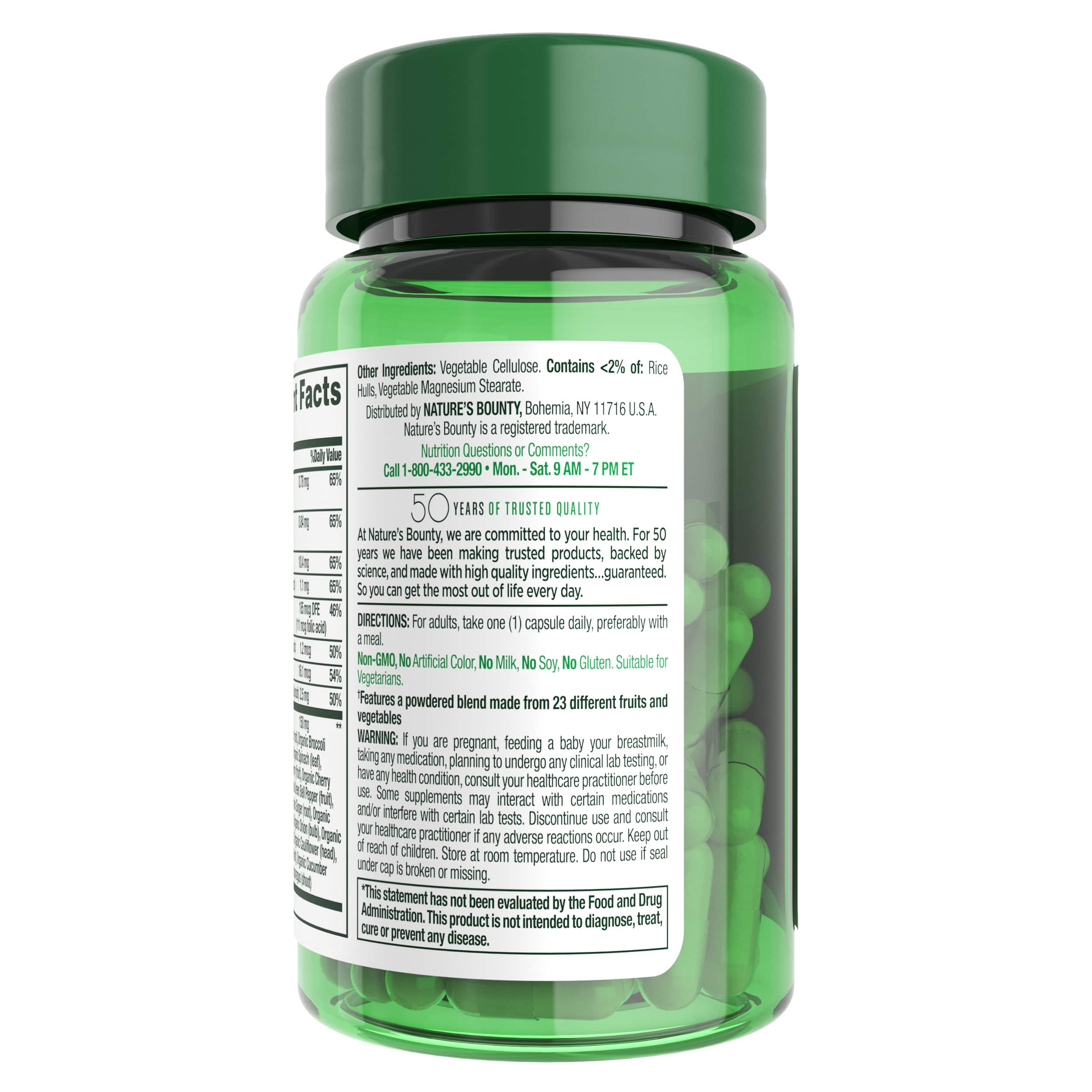 With Nature’s Bounty® Superfoods Plus Energy, adding more variety to your diet is easy! Each capsule contains a blend of 23 fruits and veggies along with a B-Vitamin Complex from superfood Quinoa Sprouts to support everyday wellness.* B vitamins support energy metabolism by aiding in the conversion of food into cellular energy.* Take this supplement just once per day to optimize your health routine.*