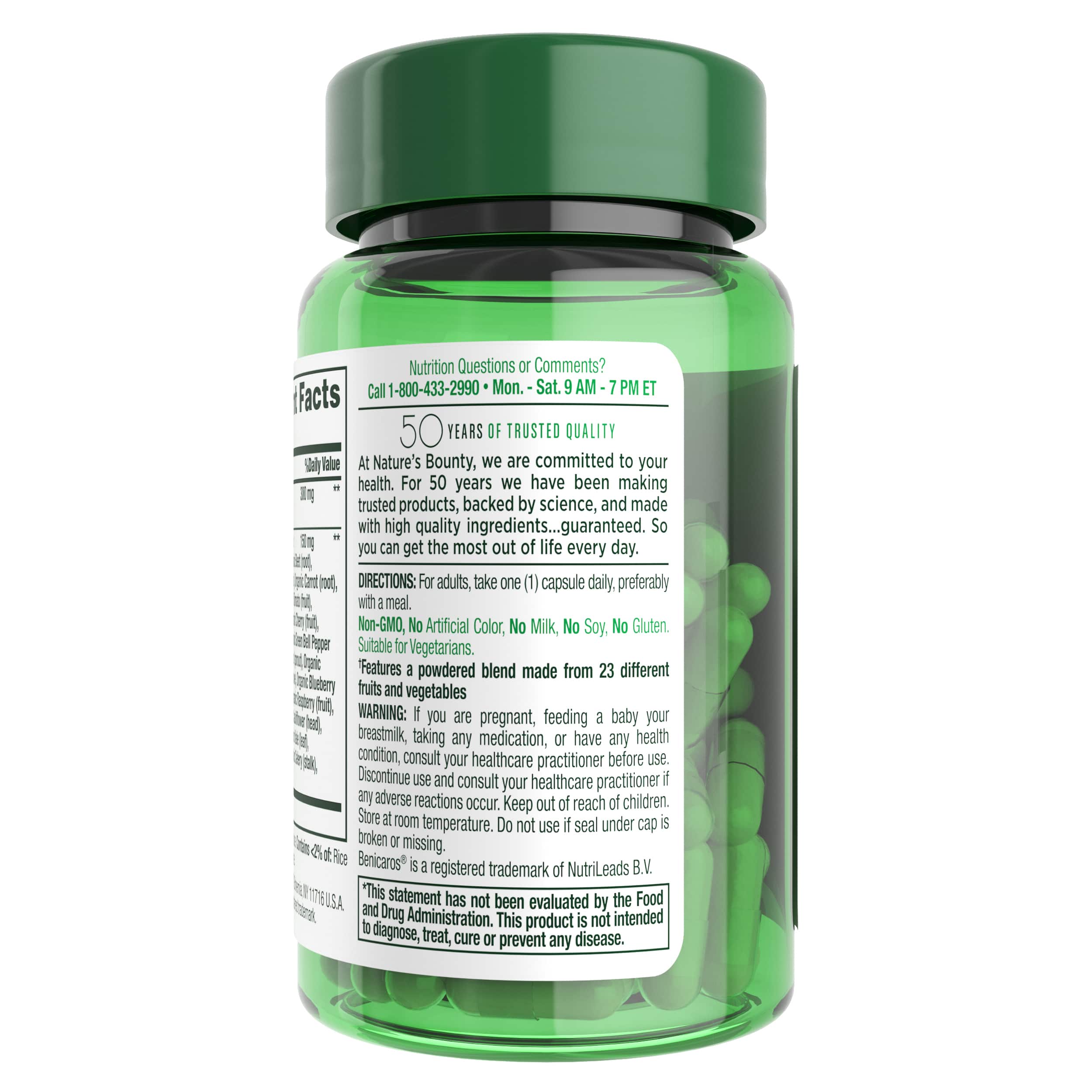 With Nature’s Bounty® Superfoods + Immune, it’s easy to add more variety to your diet while supporting your immune system.* Each convenient capsule provides a powdered blend of 23 fruits and veggies plus superfood Carrot Fiber, an ingredient clinically shown to support a healthy immune response.* Take this supplement just once per day to help maintain your overall immune health.*